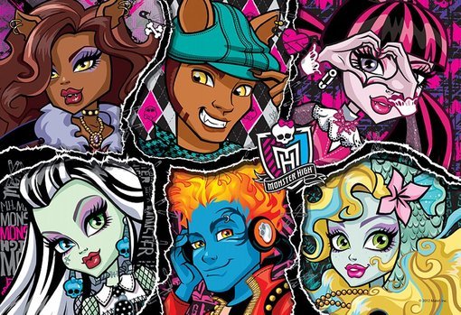 Puzzle Monster High 160 elementów pozostawia na ułożenie prostokątnego obrazka przedstawiającego upiorne uczennice ze Straszyceum. Po ułożeniu wszystkich puzzli można z bliska poznać twarze głównych bohaterek bajki Monster High. To prawdziwa gratka dla miłośniczek tej strasznej bajki!