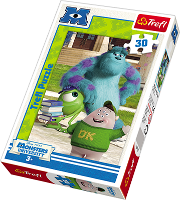 Puzzle 30 elementów z bohaterami bajki "Uniwersytet Potworny". Po ułożeniu powstanie obrazek o wymiarach 20 x 27cm. Wysoką jakość, nasycenie kolorów i bezpieczeństwo układania zapewnia wykorzystanie materiałów ekologicznych. Puzzle oparte na licencji Disney.
