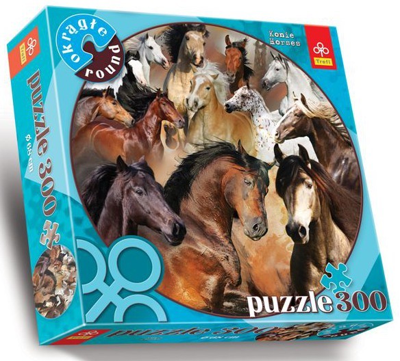 Puzzle Trefl Okrągłe konie 300 elementów pozwalają na ułożenie obrazka przedstawiającego stado galopujących koni. Ciekawą cechą puzzli Trefl Okrągłe konie 300 elementów jest fakt iż nie układamy klasycznego prostokątnego obrazka ale powstające dzieło będzie miało kształt koła! Stwórz oryginalne dzieło składając puzzle Trefl Konie 300 elementów.