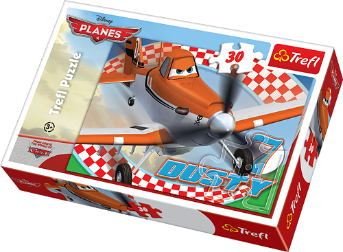 Puzzle 30 elementów z bohaterem bajki "Samoloty". Po ułożeniu powstanie obrazek o wymiarach 27x20cm. Wysoką jakość, nasycenie kolorów i bezpieczeństwo układania zapewnia kalandrowany papier odbijający światło, pokryty ekologicznymi farbami spożywczymi. Puzzle oparte na licencji Disney Planes.