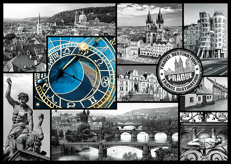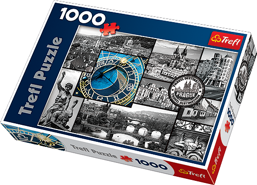 Puzzle Praga Kolaż 1000 elementów pozwalają na ułożenie prostokątnego obrazka prezentującego kolaż ze zdjęciami przypominający pocztówkę z Pragi. Po połączeniu wszystkich 1000 puzzli wystarczy włożyć całość do antyramy i już mamy gotową elegancką dekorację w sam raz do powieszenie np. na ścianie pokoju.
