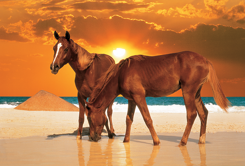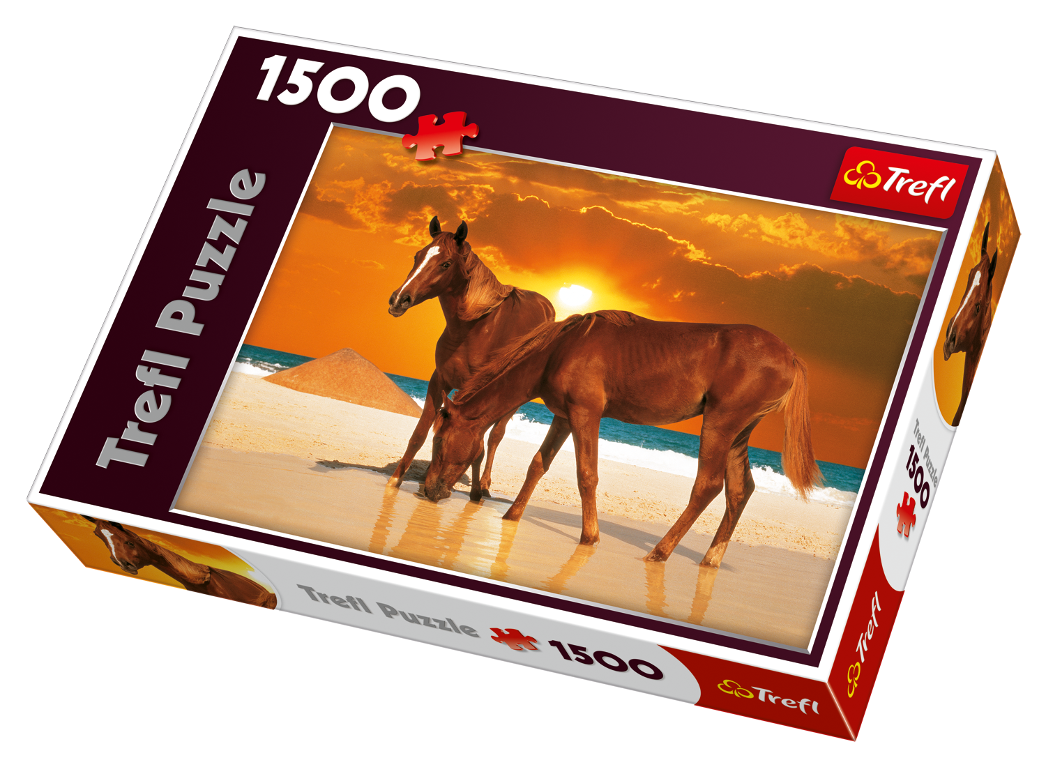 Puzzle 1500 elementów ze zdjęciem rumaków o zachodzie słońca. Po ułożeniu powstanie obrazek o wymiarach 85 x 58 cm. Wysoką jakość, nasycenie kolorów i bezpieczeństwo układania zapewnia kalandrowany papier odbijający światło, pokryty ekologicznymi farbami spożywczymi. Piękny prezent dla miłośników koni.
