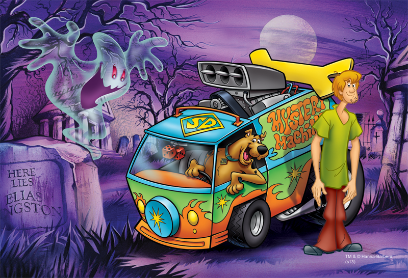 Puzzle Scooby-Doo Mini to wspaniała układanka dla dziewczyn zamknięta w małym, wygodnym opakowaniu. Dzięki temu z łatwością mieszczą się w dziecięcym plecaku lub na półce z zabawkami. Po ułożeniu wszystkich 54 elementów powstanie obrazek przedstawiający Kudłatego oraz Scoobiego siedzącego za kierownicą Wehikułu Tajemnic. Dwójka przyjaciół znajduje się na przed wjazdem na upiory cmentarz.