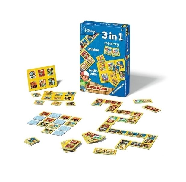 Razem z Panem Złota Rączka 3 w 1 i jego przydatnymi narzędziami, będziesz mógł zagrać w 3 różne gry, sam lub z przyjaciółmi. Kto będzie miał najlepszą pamięć i zgromadzi najwięcej par w grze memory? Komu pierwszemu uda się wyłożyć wszystkie karty domino, tworząc długiego węża? Kto jako pierwszy pokryje całą planszę Lotto?