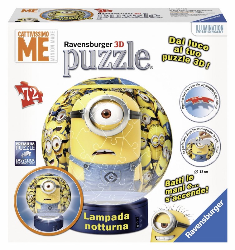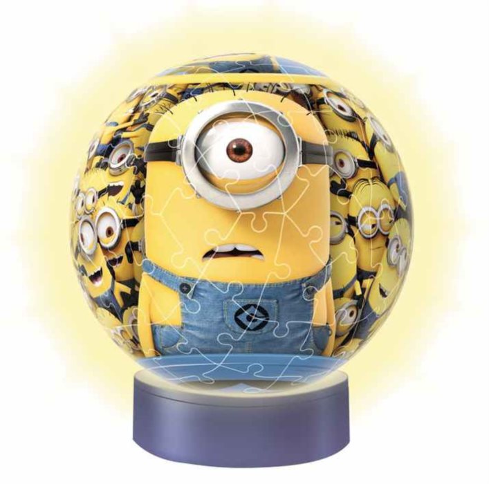 Stwórz stabilną kulę z perfekcyjnie wykrojonych, plastikowych puzzli. Technologia “easystick” gwarantuje świetną zabawę od początku do Końca! Puzzle po ułożeniu można nałożyć na specjalną podstawkę z wbudowaną lampką. Dzięki temu powstaje wyjątkowa lampka nocna, która ucieszy każdego fana Minionków.