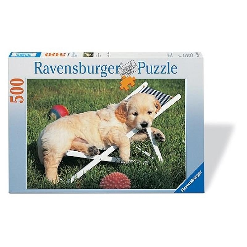 Ravensburger Puzzle Wypoczynek wśród zieleni 500 elementów oferuje doskonałą jakość kawałek po kawałku. Puzzle Wypoczynek wśród zieleni pozwalają na ułożenie obrazka przedstawiającego słodkiego szczeniaczka wypoczywającego na leżaku po wyczerpującej zabawie z piłeczkami znajdującymi się niedaleko leżaka. Ponadto poprzez zabawę z puzzlami dzieci ćwiczą wyobraźnię przestrzenną i rozwijają umiejętności manualne.
