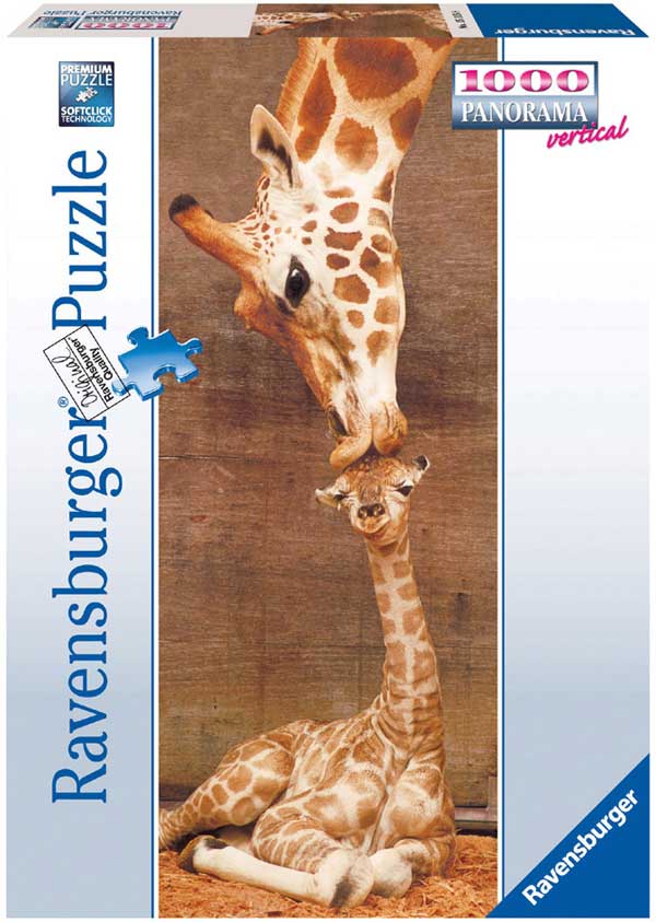 Ravensburger Puzzle Żyrafy 1000 elementów to doskonała jakość wykonania kawałek po kawałku. Puzzle Żyrafy pozwalają na ułożenie prostokątnego obrazka przedstawiającego dwie żyrafy. Dorosłą mamę „całującą” w głowę młodą żyrafę leżącą na swoim posłaniu. Ponadto poprzez zabawę z puzzlami dzieci ćwiczą wyobraźnię przestrzenną i rozwijają umiejętności manualne.