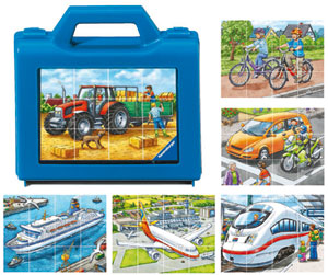 Ravensburger Układanka Klockowa Transport to wspaniały prezent dla najmłodszych fanów puzzli. W skład zestawu wchodzi 12 klocków, z których można ułożyć aż 6 różnych obrazków przedstawiających różne formy transportu! Po zakończonej zabawie wszystkie elementy układanki można schować do poręcznej, plastikowej walizeczki. Układanka klockowa to wspaniała zabawa dla najmłodszych. Ćwiczy koncentrację, spostrzegawczość oraz zdolności manualne.