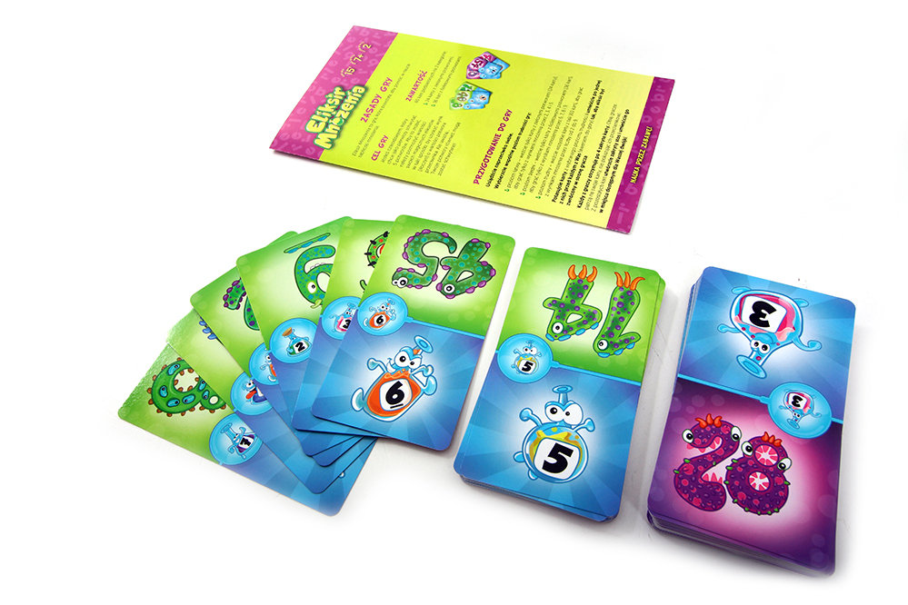 - Każdy z graczy ma na ręce komplet dwustronnych kart: na górze każdej z nich znajduje się potwór oznaczony liczbą, a na dole - eliksir z numerem.