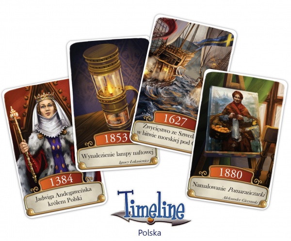 Czy wiesz, że spinacz biurowy wynalazł Polak? A może jesteś w stanie odgadnąć datę tego wydarzenia? Pamiętasz, kiedy Polska odzyskała niepodległość? Jak myślisz, co zbudowano wcześniej: Bazylikę Mariacką w Gdańsku czy kopalnię soli w Wieliczce? Wybierz jedną z posiadanych w ręku kart i zdecyduj, czy prezentowane przez nią wydarzenie miało miejsce przed tym, które leży już na stole, czy po nim. Następnie odwróć kartę i sprawdź, czy masz rację! Nie musisz znać żadnych dat i wydarzeń, wystarczy dedukcja i trochę szczęścia.
