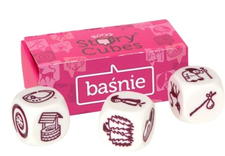 Oto prosta w założeniach i jednocześnie genialna gra, która dostarczy wam masę radości, stanowiąc przy tym doskonały trening pomysłowości i wyobraźni. Story Cubes: Baśnie to trzy ładnie wykonane, sześcienne kostki, z których każda zawiera na ściankach odmienny zestaw ilustracji. Jest to rozszerzenie do gry Story Cubes. Tym razem posiadają 18 unikalnych ikonek opisujących elementy znane z różnych popularnych baśni, które mogą zostać wykorzystane przy snuciu opowieści.