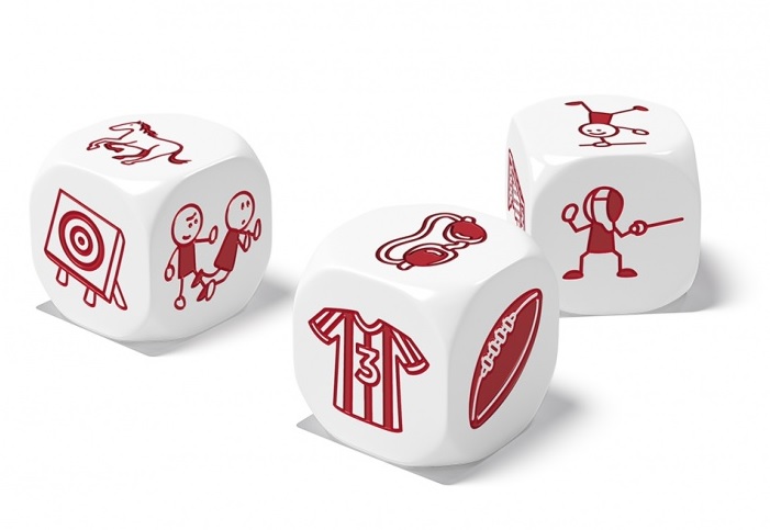 Oto prosta w założeniach i jednocześnie genialna gra, która dostarczy wam masę radości, stanowiąc przy tym doskonały trening pomysłowości i wyobraźni. Story Cubes: Sport to trzy ładnie wykonane, sześcienne kostki, z których każda zawiera na ściankach odmienny zestaw ilustracji. Jest to rozszerzenie do gry Story Cubes. Tym razem posiadają 18 unikalnych ikonek opisujących elementy znane z różnych popularnych sportów, które mogą zostać wykorzystane przy snuciu opowieści.