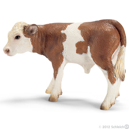 Schleich Cielę Rasy Simental 13642 to ręcznie malowana i precyzyjnie wykonana figurka kolekcjonerska z serii Życie na farmie. Cielę tej rasy wywodzi się ze Szwajcarii i należy do jednej z najliczniejszych i najpopularniejszych ras bydła na świecie. Gdy młody cielaczek podrośnie stanie się odpornym na choroby osobnikiem osiągającym masę ciała do 800 kg.