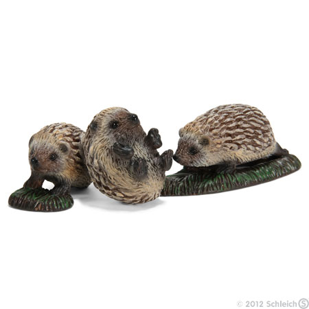 Schleich Młode Jeżyki 14623 to ręcznie malowana i precyzyjnie wykonana figurka kolekcjonerska z serii Zwierzęta Leśne. Trzy małe jeżyki należą do gatunku owadożernych ssaków pokrytych włosami przekształconymi w kolce. Żyją głównie w lasach, prowadzą nocny tryb życia, w stanie zagrożenia zwijają się w kulkę dając odpór większości drapieżników. Zjadając duże ilości szkodników przyczynia się do poprawy środowiska. Ciekawostką jest fakt iż jeże potrafią się wspinać i pływać.