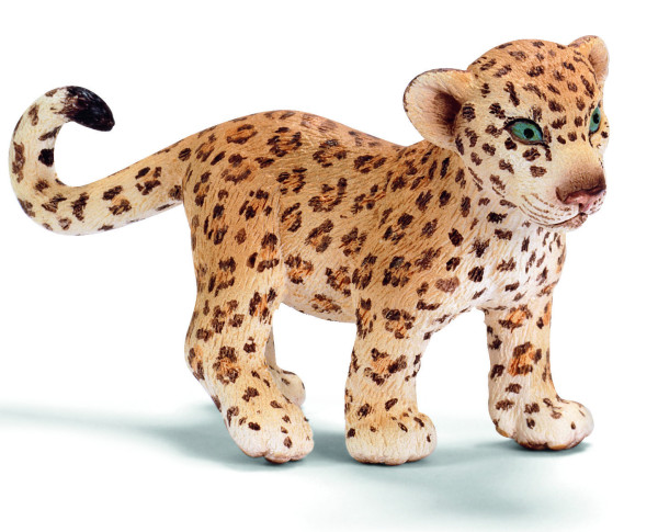Schleich Młody Leopard 14399 to ręcznie malowana i precyzyjnie wykonana figurka kolekcjonerska z serii Dzikie Zwierzęta. Mały kotek jak podrośnie stanie się niebywale zwinnym i silnym drapieżnym ssakiem. Będzie się wspinać, stąpać po cienkich gałęziach oraz świetnie pływa. Jego bronią będą kły i ostre pazury. Lamparty żyją od 15 - 25 lat i zamieszkuje całą Afrykę i środkową Azję. Teraz dzięki figurkom Schleicha mali miłośnicy przyrody mogą stworzyć swoje własne ZOO z prawdziwego zdarzenia, nie ruszając się z domu.