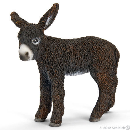 Schleich Osiołek Źrebię 13686 to ręcznie malowana i precyzyjnie wykonana figurka kolekcjonerska z serii Zwierzęta Gospodarskie. Jest ssakiem z rodziny koniowatych, udomowiony przez człowieka wcześniej niż koń. W stanie dzikim występuje jeszcze tylko na kontynencie afrykańskim. Oprócz klasycznych funkcji jak transport towarów i ludzi, zwierze służy człowiekowi jako element terapii dzieci przewlekle chorych.