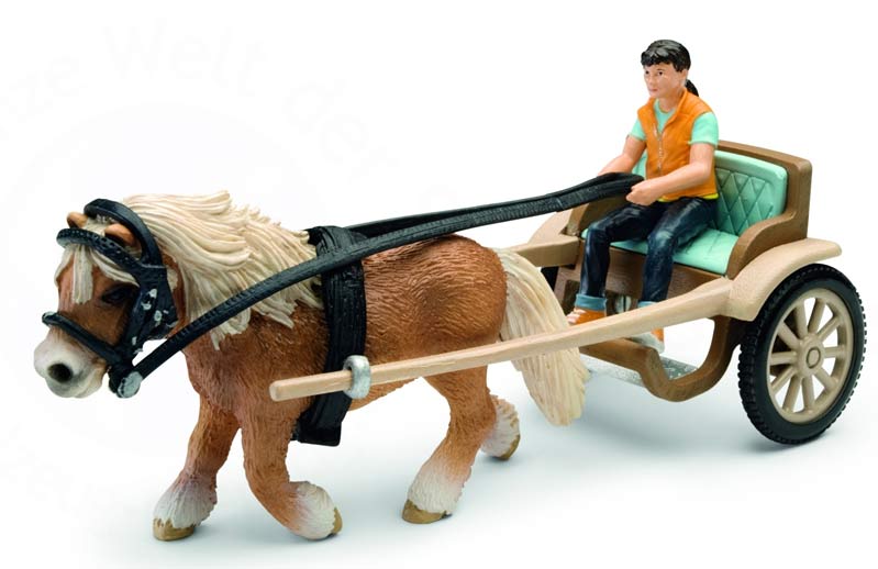 Zestaw zawiera powóz, kucyka, figurkę oraz akcesoria do powożenia.