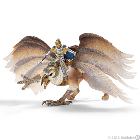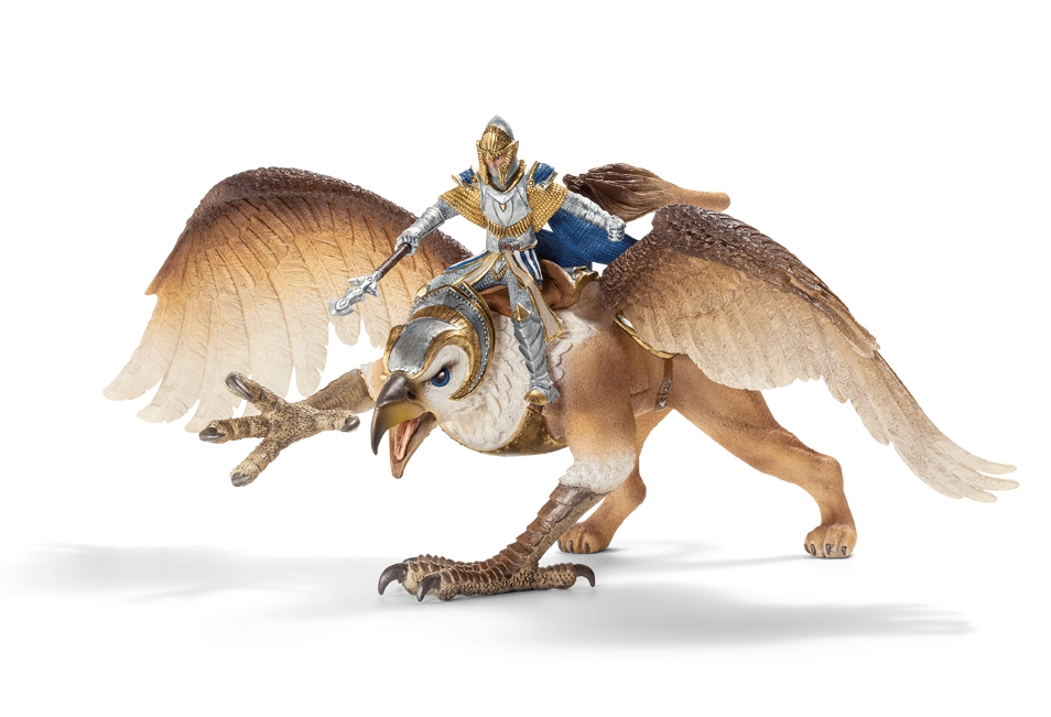 Schleich Rycerz na Gryfie 70107 to ręcznie malowana i precyzyjnie wykonana figurka kolekcjonerska z serii Rycerze. Dzięki magnezowi rycerz nie spadnie z gryfa. Gryf rusza skrzydłami.