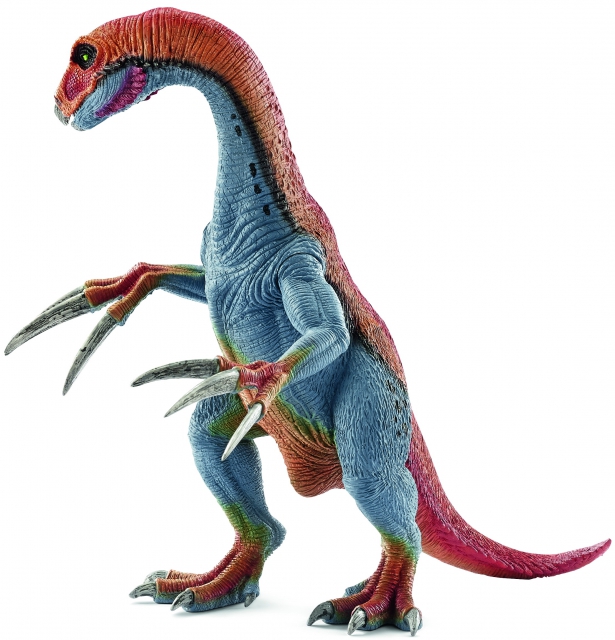 Schleich Terizinozaur 14529 to ręcznie malowana i precyzyjnie wykonana figurka kolekcjonerska z serii Dinozaury. Żył w okresie późnej kredy (ok. 70 mln lat temu) na terenach Azji. Terizinozaur był wielkim teropodem z gigantycznymi, rekordowymi w świecie zwierząt (nawet 70 cm) pazurami w kształcie kosy. Figurka posiada ruchomą szczeke i łapy.