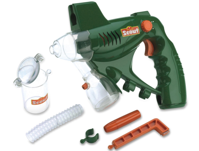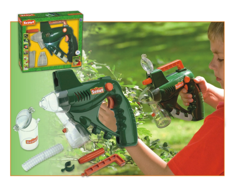 Scout Pistolet Na Owady 19271 przyda się podczas każdej obserwacji. Jeszcze nigdy chwytanie owadów nie było tak łatwe. Działający na podciśnienie pistolet zasysa wybrane okazy bezpośrednio do pojemnika. Dodatkowo drugi pojemnik posiada 3-krotnie powiększającą przykrywkę. Możliwe jest dwustopniowe ustawienie siły ssania. Pistolet na owady 19271 wyposażony jest w lampkę, która pozwala na oświetlenie owadów. Demontowany uchwyt pistoletu w połączeniu z soczewką tworzy lupę (powiększenie 3x). W komplecie z pistoletem znajduje się elastyczne rurka z tworzywa umożliwiająca chwytanie owadów w trudno dostępnych miejscach.
