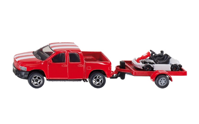 Siku Pick-Up z Gokartem 1644 - Model z serii SUPER zrobiony jest głównie z metalu z elementami plastikowymi, wszystko to wykonane bardzo dokładnie z dużą dbałością o szczegóły. Modele SIKU oprócz perfekcyjnego wykończenia są również bardzo wytrzymałe i umożliwiają stworzenie niezwykłej kolekcji unikatowych pojazdów.