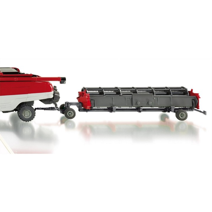 Siku Kombajn Zbożowy Massey Ferguson 4257 zrobiony jest w skali 1:32, głównie z metalu z elementami plastikowymi. Model został wykonany bardzo dokładnie z dużą dbałością o szczegóły. Wszystko po to by jak najwierniej odwzorować rzeczywisty pojazd. Gumowe opony ułatwiają poruszanie się po różnych powierzchniach. Kombajn wyposażony jest także w składany zespół tnący, a figurka kierowcy znajdująca się w kabinie dodatkowo dodaje realizmu zabawie. Kombajn posiada wózek do którego można podpiąć nagarniacz.