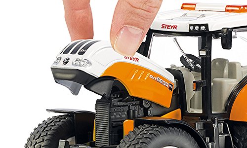 Siku Traktor Steyr 4240 CVT 3286 w skali 1:32 z serii Farmer to unikalny pojazd do zadań specjalnych. Traktor posiada podnoszoną klapę silnika, tylni hak oraz specjalistyczny hak z przodu do podpięcia innych urządzeń rolniczych. Dodatkowo gumowe opony zapewniają swobodne poruszanie się po różnych powierzchniach.