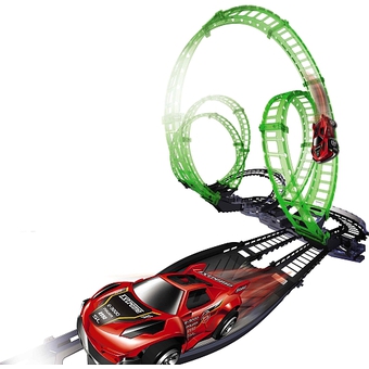 3D X-Trek Multi Loop pozwoli Ci zmierzyć się z 4 elastycznymi pętlami. Możesz też rywalizować poza torem, wybór należy do Ciebie! Zaproś do zabawy swoich przyjaciół. Dzięki 4 kanałom sterowania (A, B, C, D) możliwa jest jazda czterech aut obok siebie bez wzajemnego zakłócania sygnału. Wyposażone w akumulator Li-Poly auto jeździ w kierunkach przód-tył, lewo-prawo. Dodatkowo system E-Power Boost umożliwia kierowcy włączenie dopalacza Turbo. Pozwala to na sprawne wyprzedzenie rywali lub szybsze pokonanie pętli toru.