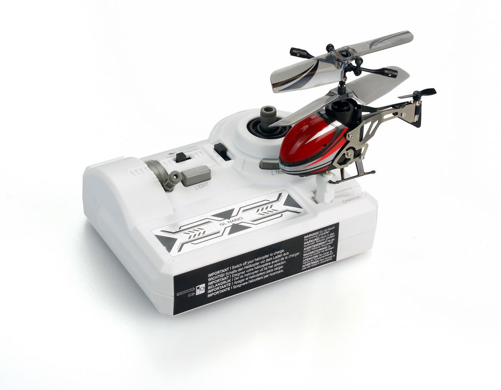 Pilot umożliwiający kierowanie helikopterem jest jednocześnie ładowarką, która w razie potrzeby pozwala doładować litowo polimerowy akumulatorek śmigłowca. Dodatkowo pilot obsługuje 3 różne częstotliwości nadawania (A, B, C). Umożliwia to zabawę trzech zabawek obok siebie, bez wzajemnego zakłócania sygnału.