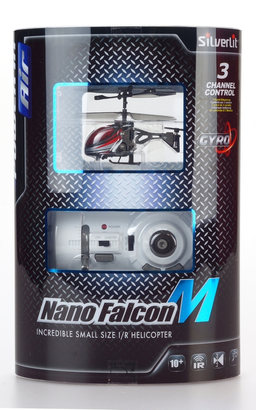 Nano Falcon M to ultralekki i najmniejszy helikopter Silverlit sterowany na podczerwień. Falcon M zbudowany jest z doskonale absorbującego uderzenia materiału w sam raz sprawdzi się podczas lotów w pomieszczeniach. Trzy kanały sterowania pozwalają na lot góra, dół, przód, tył, lewo, prawo. Do tego trymer znajdujący się na ogonie pozwala poprawić balans naszej latającej maszyny.