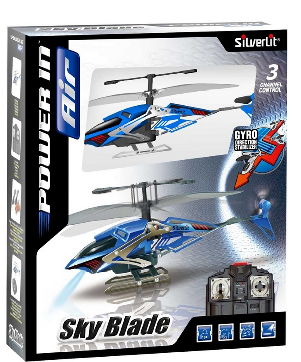 Helikopter Sky Blade posiada system żyroskopowy zapewniający stabilność urządzenia w trakcie lotu, precyzyjny regulator prędkości. 3 kanały sterowania pozwalają latać trzem maszynom obok siebie bez wzajemnego zakłócania sygnału przez piloty. Dodatkowo maszyna wyposażona jest w znajdującą się z przodu świecącą diodę LED.