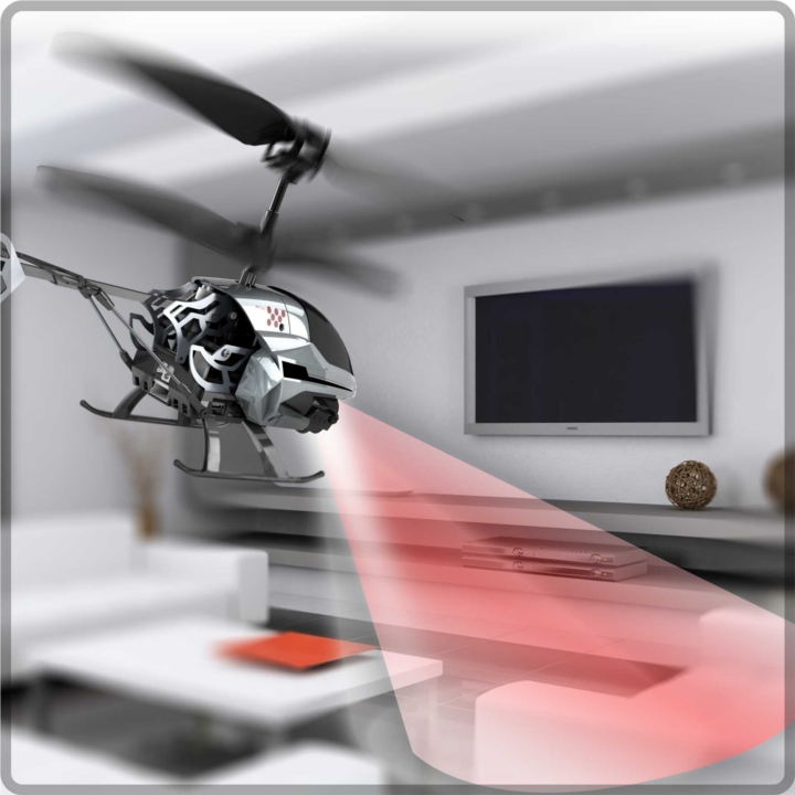 Helikopter jest 3-kanałowy co oznacza, że możemy nim kierować przód-tył, góra-dół oraz prawo-lewo. Spy Cam sterowany na podczerwień posiada również specjalny systemem gyro, który stabilizuje pozycję w locie.