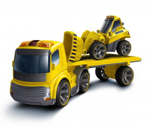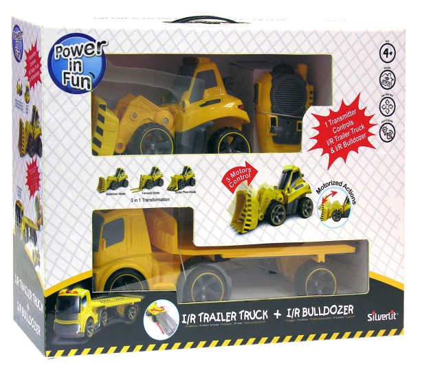 Stwórz własny wielki plac budowy z maszynami budowlanymi Silverlit. W zestawie znajduje się wspaniała, zdalnie sterowana, wielofunkcyjna maszyna budowlana w komplecie z lawetą, która może ją przewozić w dowolne miejsce. Dzięki trzem wymiennym końcówkom szybko dokonasz transformacji pojazdu z koparki w buldożer lub podnośnik widłowy.