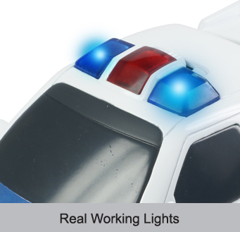 Samochód Policyjny 81131 to solidnie wykonany pojazd ratowniczy, dzięki któremu dziecko spełni swoje marzenie i zostanie dzielnym policjantem. By zabawa była bardziej realistyczna Samochód Policyjny 81131 wyposażona została w efekty świetlne, dźwiękowe oraz wzmacniany przedni zderzak.