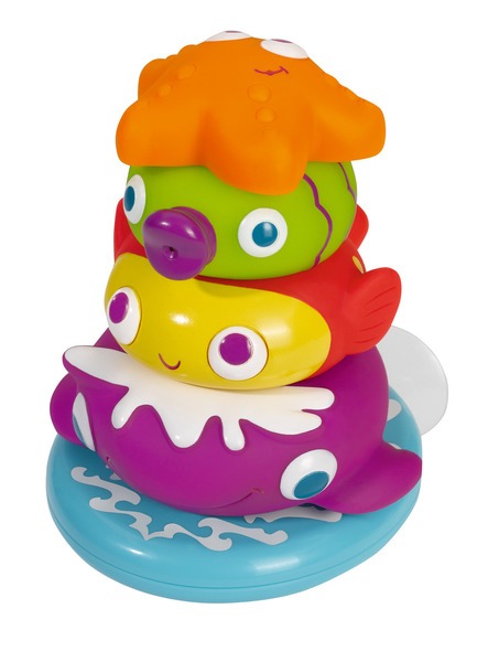 Gumowe zwierzątka do kąpieli, układane na piramidkę z przyssawką do wanny.