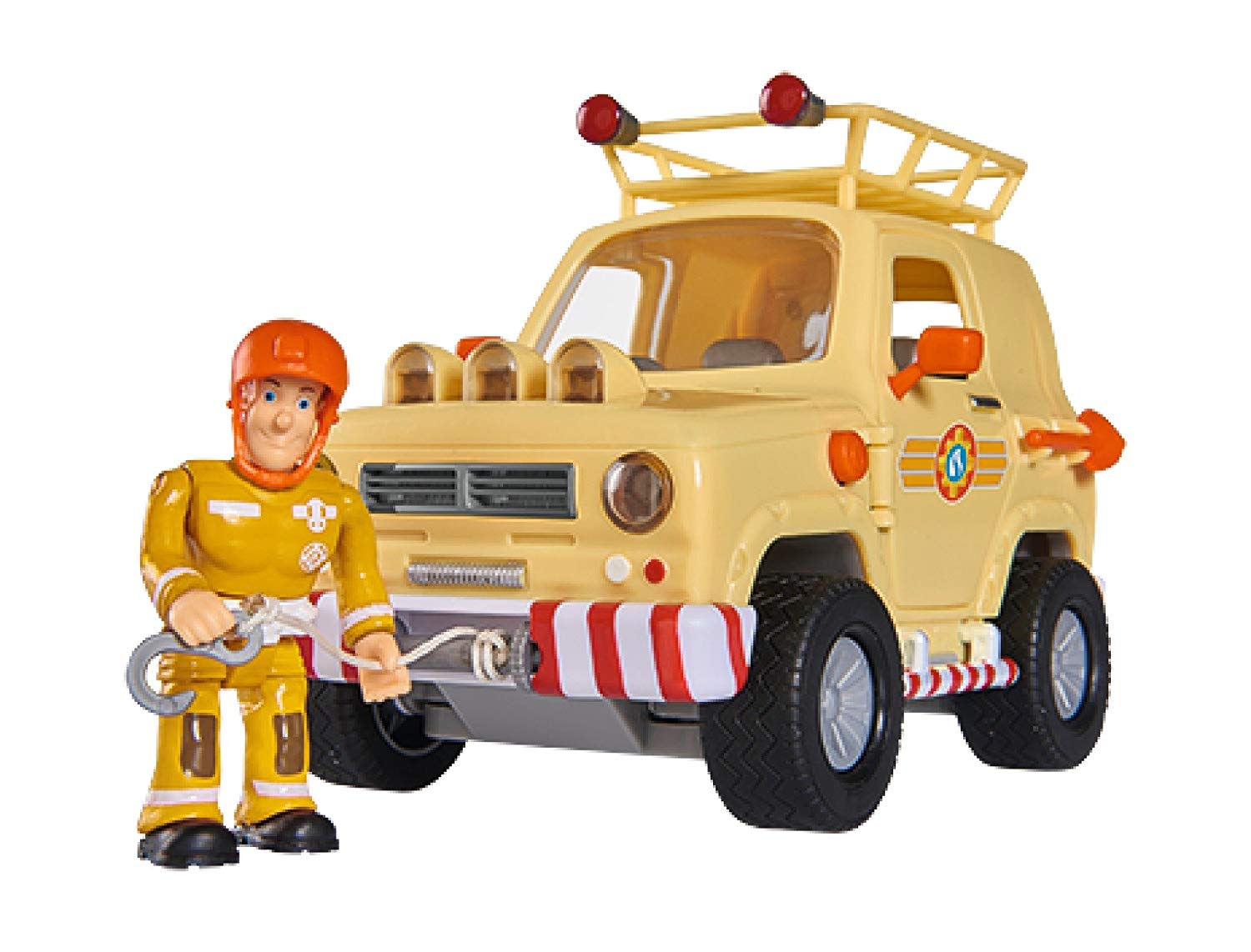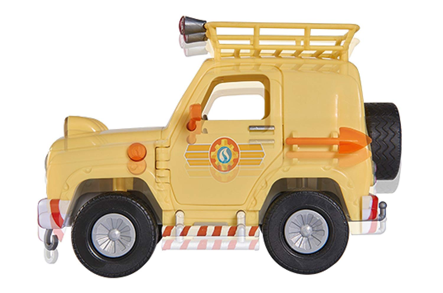 Simba Strażak Sam Jeep ratunkowy 00622 Strażak Sam to najbardziej znany strażak na świecie i zarazem ulubiona bajka dzieci, to najnowszy zestaw zabawek z serii Strażak Sam. Jeep wóz ratunkowy to kolejny super samochód Strażaka Sama, wzorowany jest na swoim bajkowym odpowiedniku. Rusz razem z Samem, aby nieść ratunek, wóz posiada migające światełka na dachu oraz autentyczne dźwięki co niewątpliwie jest dużym atutem tej zabawki. Jeep Sama posiada gumowe, ruchome koła i amortyzatory, dzięki którym podczas jazdy po nierównym terenie pojazd porusza się jak prawdziwy. W otwieranym bagażniku jest miejsce na wszystkie akcesoria.
