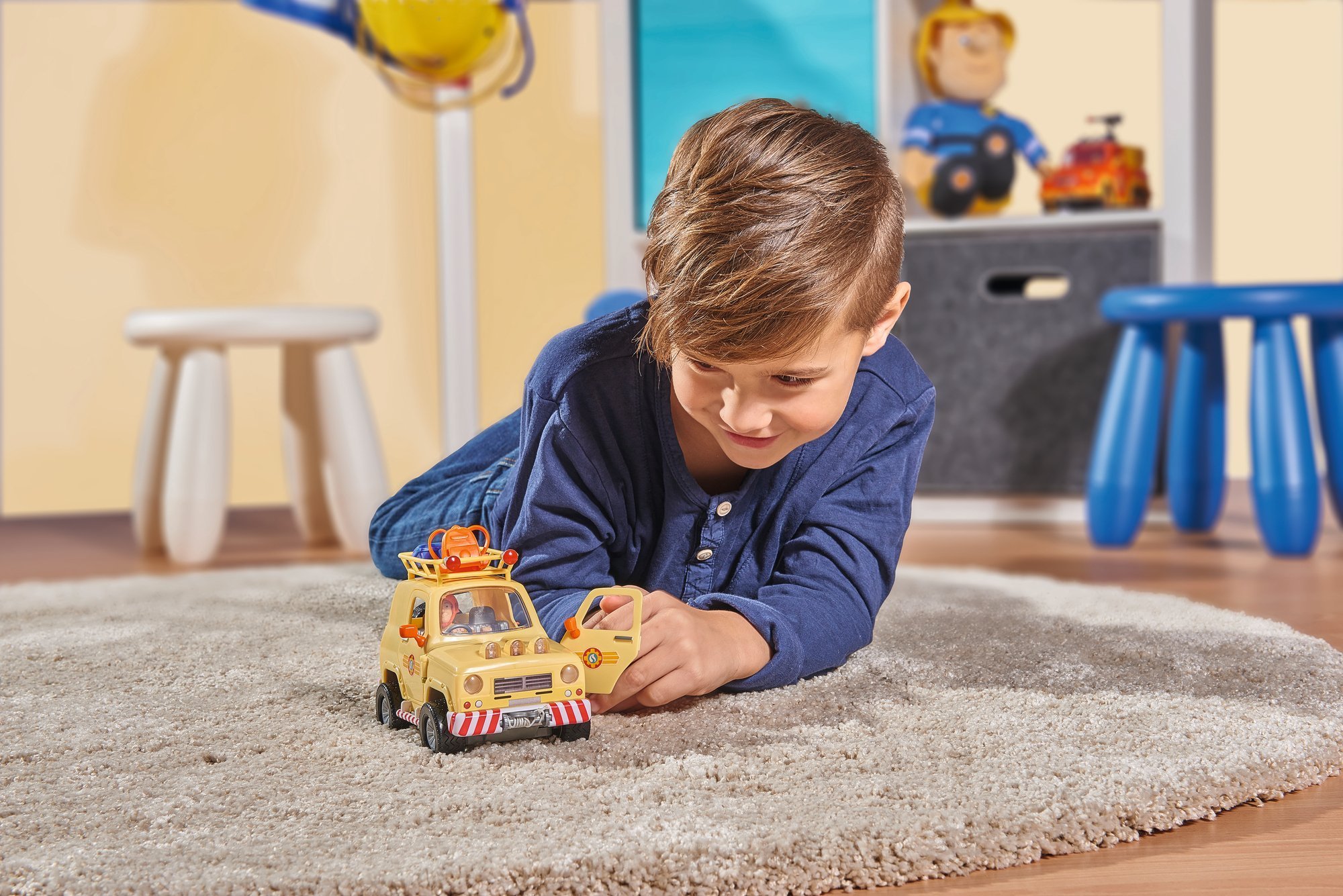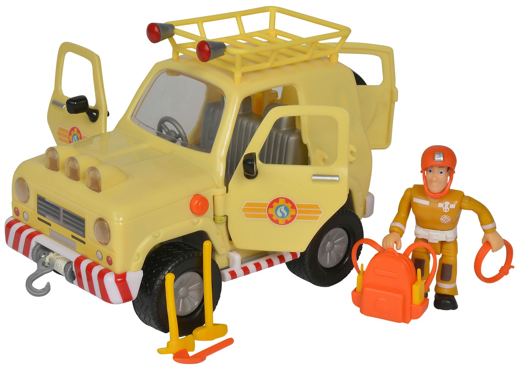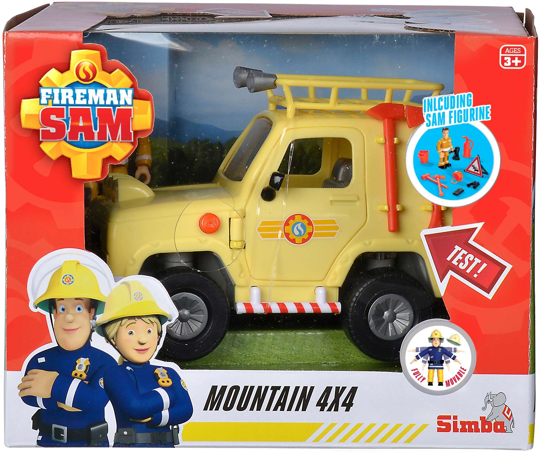 Strażak Sam bierze udział w wielu wspólnych akcjach ratunkowych. Kiedy tylko ktoś potrzebuje pomocy Strażak Sam zawsze jest w pogotowiu. Jeep strażaka ma wiele detali, które przeniosą Cię do bajki z bohaterskim Strażakiem Samem. Pojazd został wyposażony w reflektory z efektem świetlnym uruchamianym przyciskiem, cztery gumowe koła, zapasowe koło, zaczep na łopatę, otwierane drzwi, rozwijana linę holującą, otwierany bagażnik, bagażnik dachowy. W zestawie znajduje się figurka Sama w żółtym stroju pogotowia górskiego ze zdejmowanym kaskiem ochronnym. W zestawie znajduje się również plecak, łopata, linka, 3 młoty i 2 krótkofalówki.