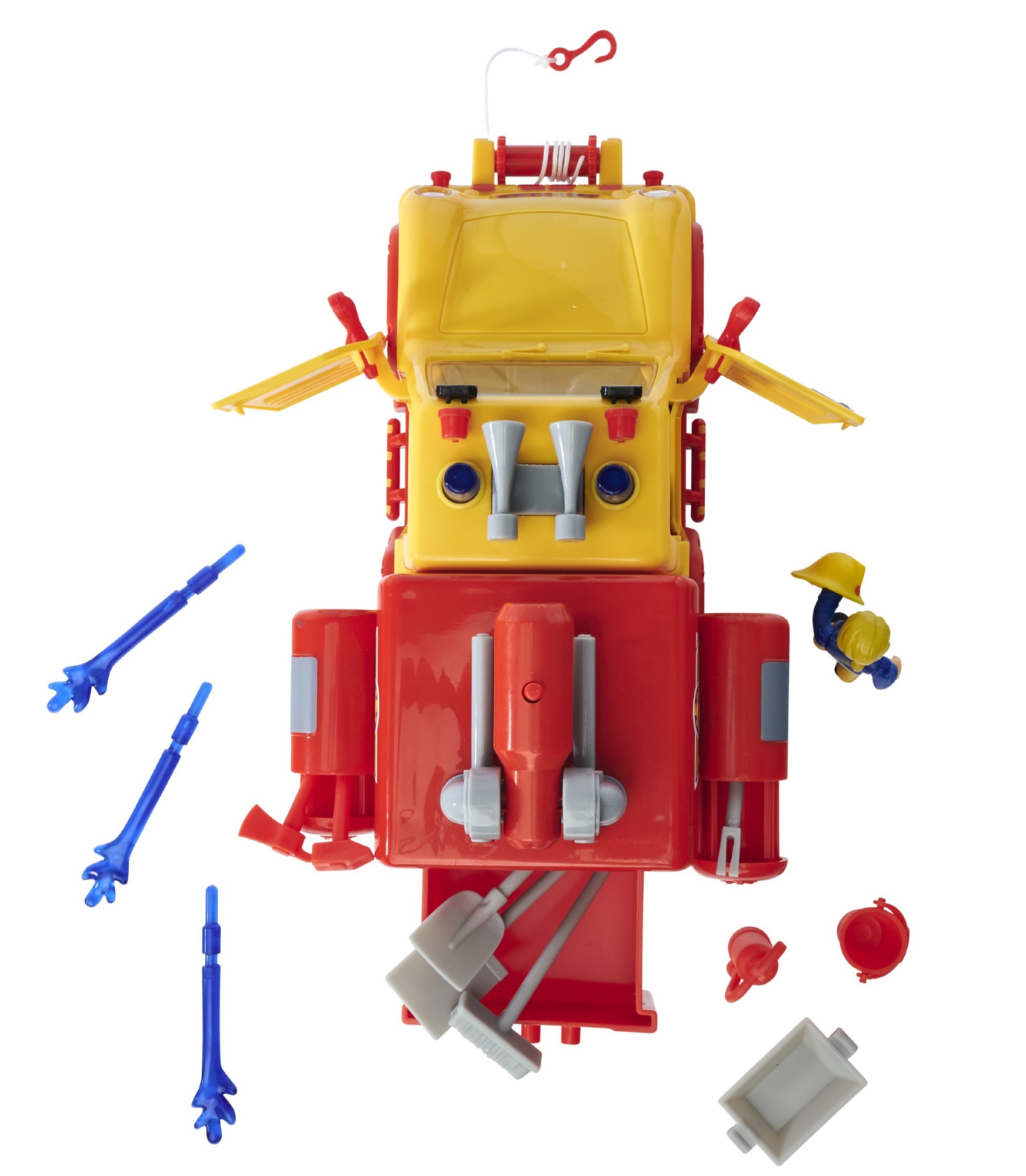 Charakterystyczny czerwono-żółty wóz wyposażono w sześć gumowych kół dzięki czemu doskonale radzi sobie w każdych warunkach. Pojazd posiada otwierane drzwi, a także otwierana pakę, w której także można schować niezbędne akcesoria potrzebne w akcjach ratunkowych. Zabawka wykonana z materiałów wysokiej jakości, z niezwykłą dbałością o szczegóły. Wymarzony prezent dla małych strażaków. Samochód posiada efekty świetlne i dźwiękowe - po naciśnięciu na specjalny, szary przycisk, wóz wyda z siebie dźwięk syreny alarmowej oraz zaświecą lampy. Samochód posiada także rozwijaną linę z hakiem oraz figurkę Penny z ruchomą głową i kończynami, a także akcesoria strażackie m.in. kask ochronny, który można założyć na głowę figurki.