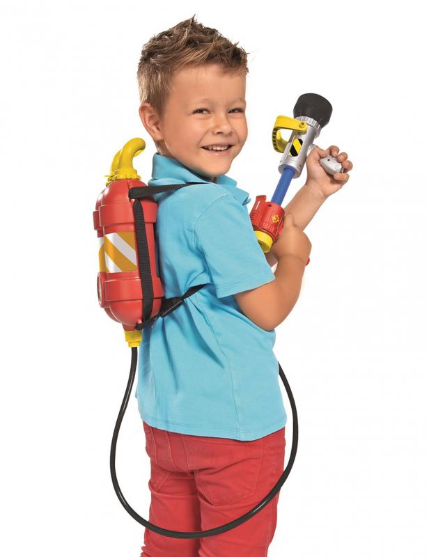 Zbiornik na wodę z szelkami do noszenia na plecach, połączony z miękką rurką z psikawką wodną na pompkę pozwoli Ci poczuć się jak Strażak Sam na misji ratunkowej gaszenia pożaru. Zbiornik ma pojemność 1,8l, a psikawka o długości 23 cm oddaje strzał wodny na odległość nawet 10 m.