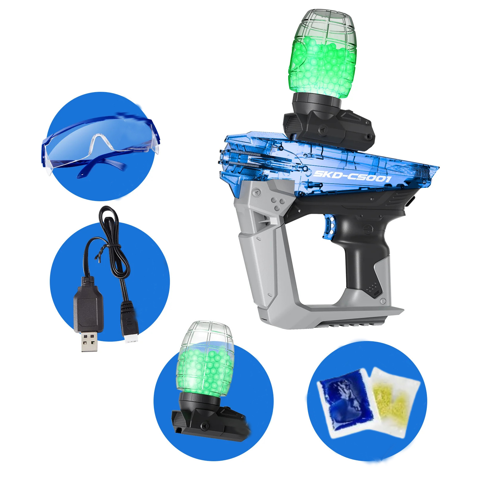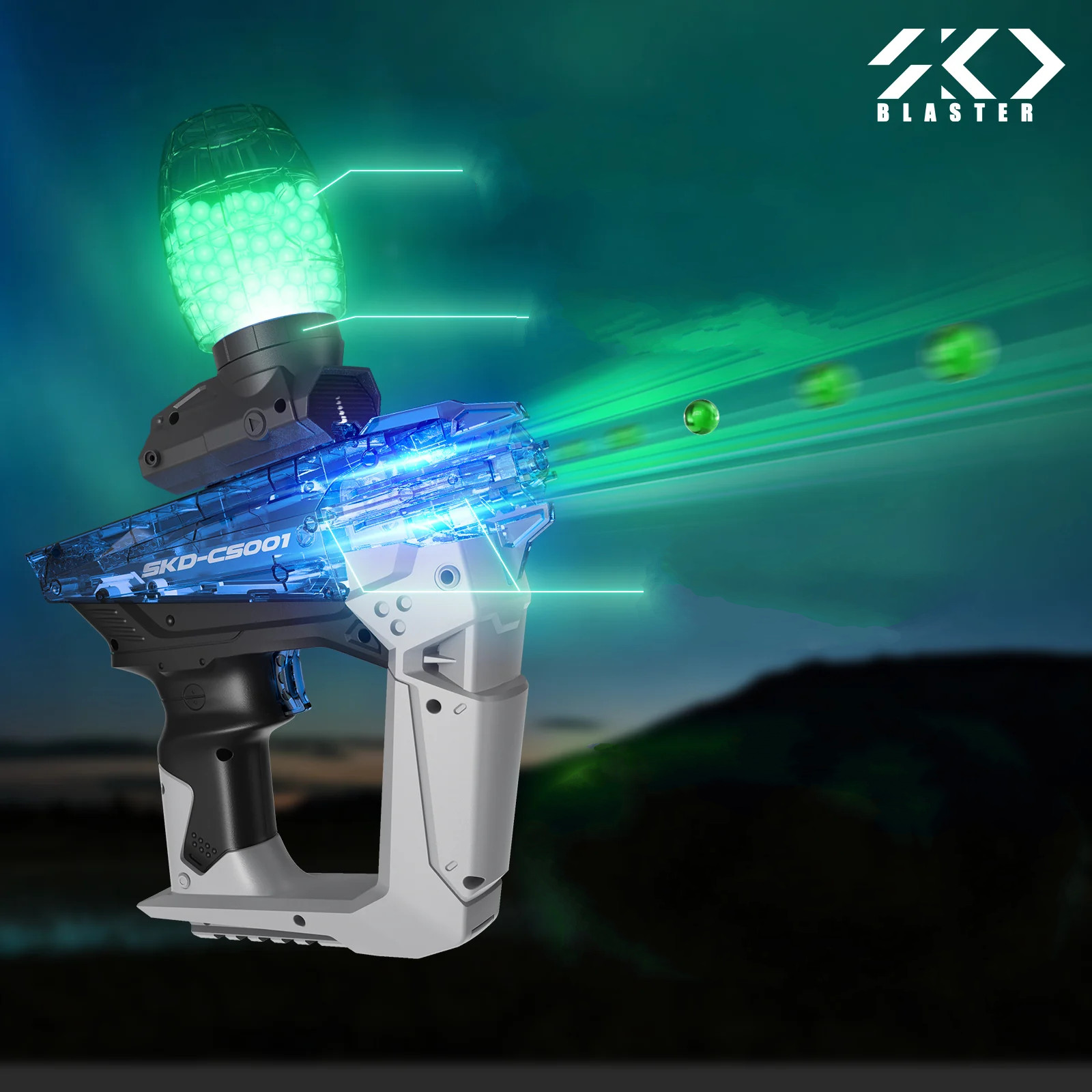 SKD Blaster Pistolet na Kulki Żelowe Automatyczny CS-001 Święcące kulki 1500 Kulek CS001SB