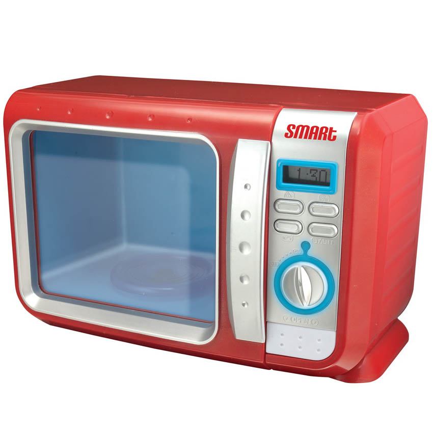 Mikrofala z obrotowym talerzem i światełkami to wspaniała zabawka dla maluchów, które podczas zabawy w dom będą miały urządzenia wyglądem i funkcjami przypominają te, które są zazwyczaj użytkowane w naszych domach. Gdy przekręcisz tarczę pokrętła na pozycję ON- zapali się światło. Naciśnij przycisk OPEN, aby otworzyć drzwi kuchenki. Umieść swoje danie do podgrzania. Jednym z trzech przycisków wybierz danie, które chcesz podgrzać i naciśnij START. Włączy się podświetlanie kuchenki, a talerz w środku zacznie się obracać.