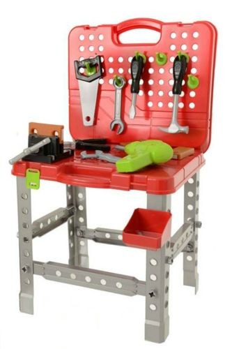 To idealny zestaw do zabawy w warsztat. Dzięki niemu dziecko uczy się posługiwania narzędziami. Całość umieszczona została w walizce, która po skręceniu staje się mini warsztatem.