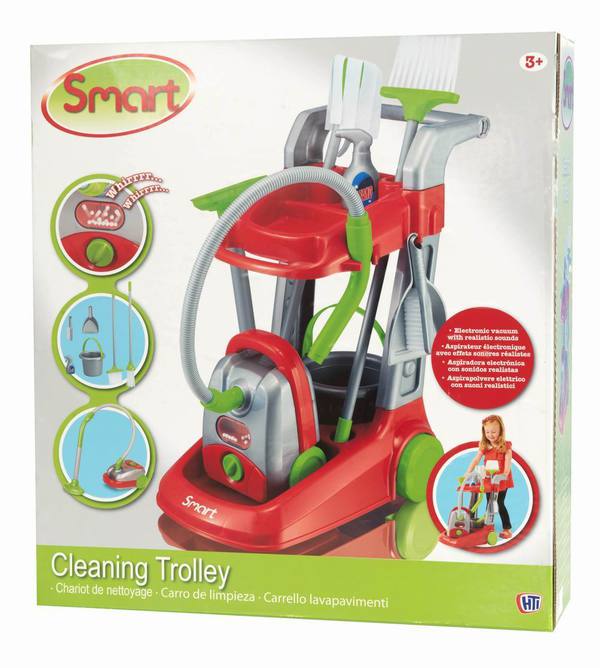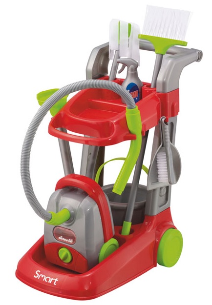 To idealny zestaw do zabawy w dom. Dzięki niemu dziecko uczy się poprzez zabawie jak dbać o czystość. Całość umieszczona została na wózku.