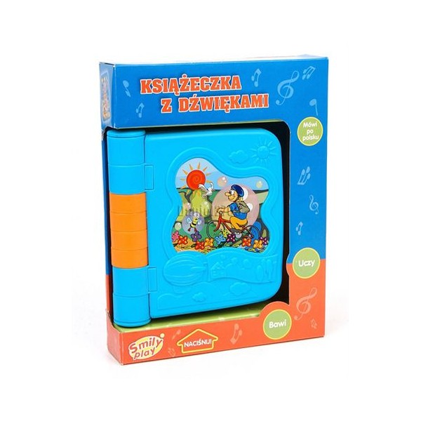 Smily Play Dźwiękowa Książeczka to interaktywna zabawka, która nie tylko bawi ale i uczy. Na obrazkach umieszczone są przyciski które uruchamiają dźwieki. Odgłosy ściśle związane są z przedstawioną ilustracją. W książeczce są obrazki z pojazdami, zwierzątkami oraz domowymi przedmiotami.