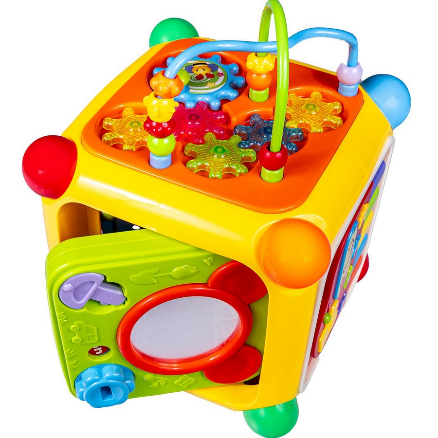 To zabawka do aktywnej zabawy, będąca swoistym centrum ogromnej frajdy. Rozwija przede wszystkim małą motorykę, czyli sprawność drobniutkich rączek oraz paluszków dziecka. Kostka posiada sześć ścian, a każda z nich to inne, atrakcyjne czynności do wykonania.