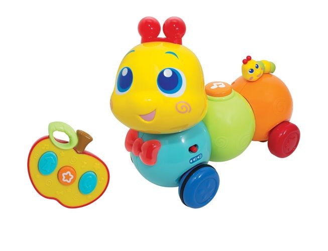 Kolorowa zabawka z melodyjkami i świecącymi czółkami. Z tyłu ma małą przesuwaną gąsieniczkę Jeździ sterowana pilotem – jabłuszkiem. Pilot jabłuszko ma 2 przyciski (przód i tył ze skrętem), z których obsługą poradzi sobie roczny maluch.