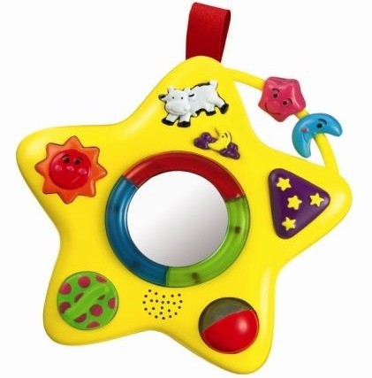 Gwiazdeczka Smily Play to zabawka skierowana do najmłodszych dzieci. Wszystkie maluchy które ukończyły już 3 miesiące mogą się nią bezpiecznie bawić ponieważ wykonana jest z dobrego jakościowo nietoksycznego, plastiku i nie posiada żadnych ostrych krawędzi. Solidny, materiałowy uchwyt usytuowany na szczycie jednego z ramion pozwala na zaczepienie zabawki przy łóżeczku czy wewnątrz wózka. Do zabawy zachęca także bezpieczne lusterko dzięki któremu dziecko widząc swoje odbicie poprzez aktywność ruchową rozwija wszystkie swoje zmysły.