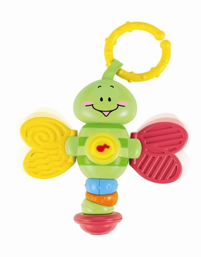 Smok grzechocze gdy dziecko potrząsa zabawką. Centralnie umieszczony przycisk funkcyjny włącza dźwięki i migoczące światełko. Śmieszny i przyjazny wygląd zachęca do zabawy, która nie ma końca.