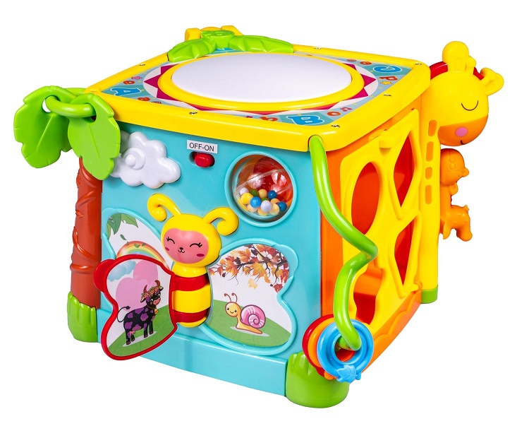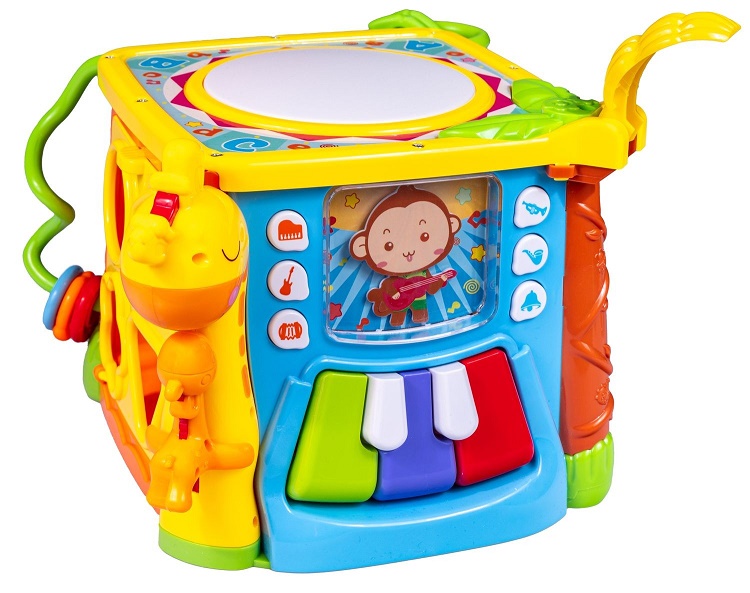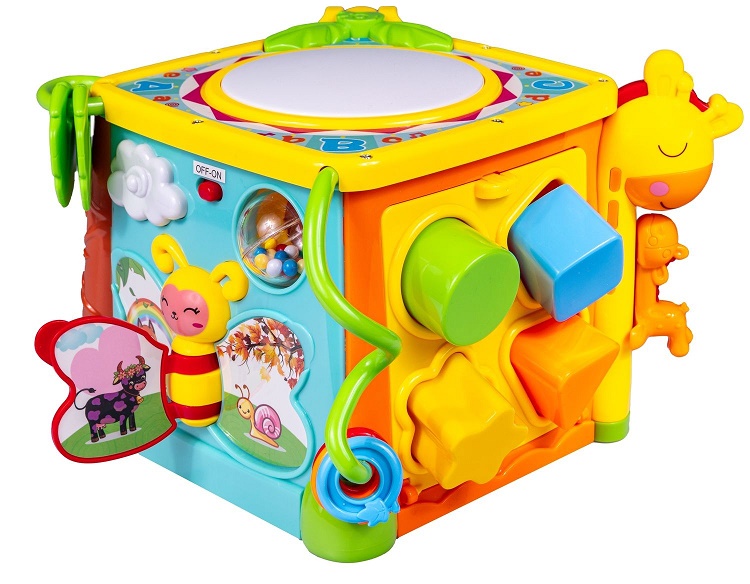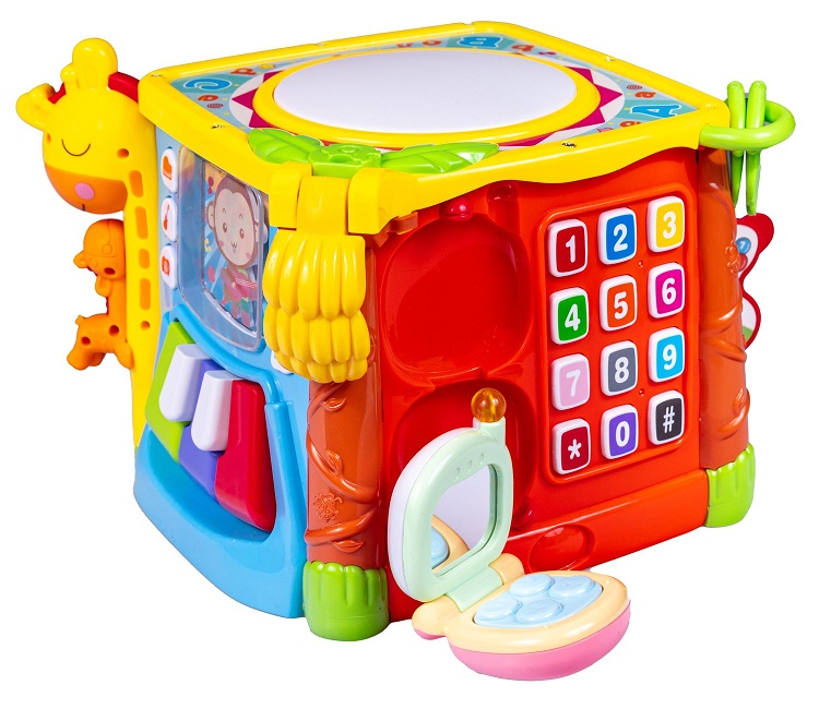 To zabawka do aktywnej zabawy, będąca swoistym centrum ogromnej frajdy. Rozwija przede wszystkim małą motorykę, czyli sprawność drobniutkich rączek oraz paluszków dziecka. Kostka posiada sześć ścian, a każda z nich to inne, atrakcyjne czynności do wykonania.