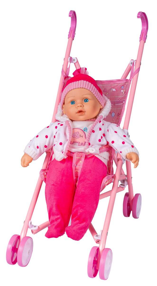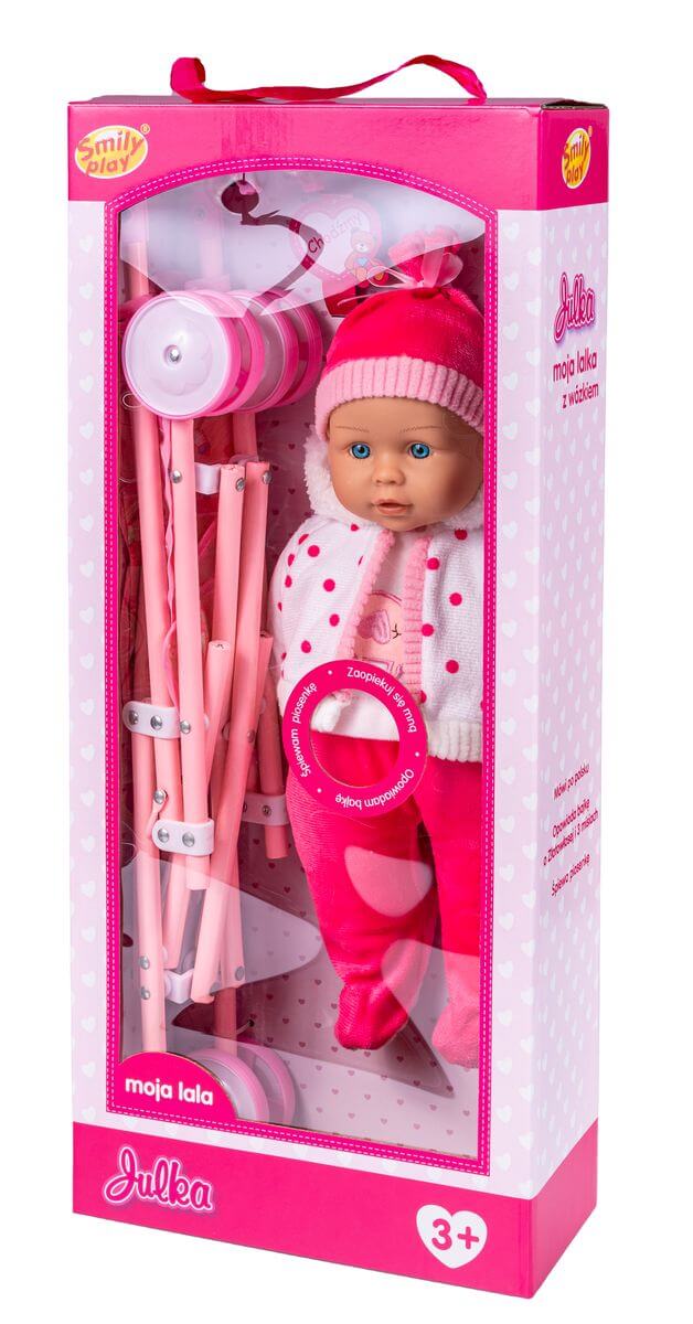 Lalka Julka lubi, kiedy się nią opiekujesz i zabierasz ze sobą na spacery. Miękka lalka jest ubrana w czapkę oraz pajacyk. Spacerówka dla lali ucieszy każdą dziewczynę i sprawi, że zabawy w „mamę i córkę” staną się ciekawsze. Zestaw zawiera stelaż i materiał na siedzisko. Wózek wykonany jest z największą starannością. Jest elegancki i trwały. Bardzo łatwy system składania/rozkładania wózka. Wózek posiada pasy bezpieczeństwa i podwójne plastikowe kółka.